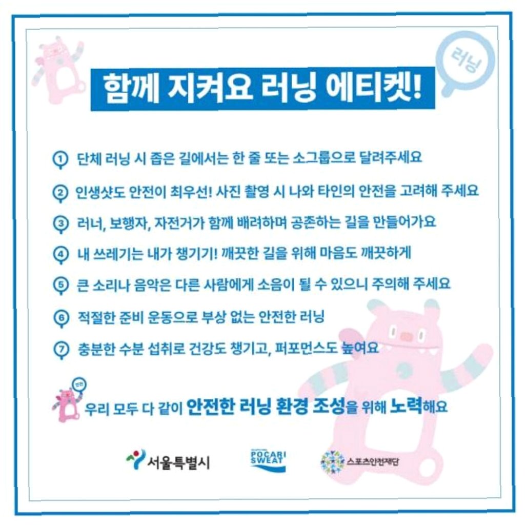러닝은 건강한 취미 활동이지만, 때로는 타인에게 불편을 줄 수 있습니다. 여의도 공원의 주의문처럼, 우리 모두가 조금씩 배려하고 노력한다면, 건강한 러닝 문화를 만들어갈 수 있습니다. 서울시의 에티켓을 참고하여, 안전하고 즐거운 러닝을 즐기세요. 우리 모두가 함께 만들어가는 건강한 러닝 문화를 기대합니다.