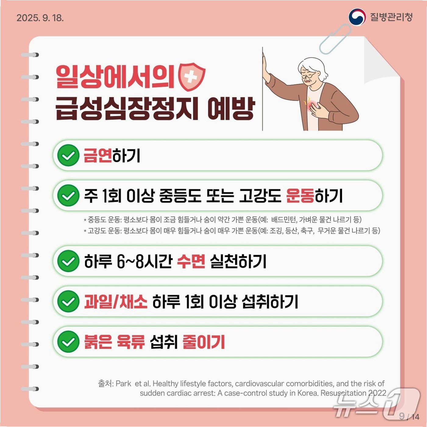 일상생활에서의 심장 건강 관리는 매우 중요합니다. 질병관리청은 금연, 주 1회 이상 중등도 또는 고강도 운동 습관, 하루 6~8시간의 충분한 수면, 하루 1회 이상 과일 및 채소 섭취, 붉은 육류 섭취 줄이기 등을 권장하고 있습니다. 이러한 생활 습관 개선을 통해 심혈관 질환의 위험을 줄이고 건강한 심장을 유지할 수 있습니다. 꾸준한 노력과 실천이 건강한 삶의 시작임을 잊지 말아야 합니다.