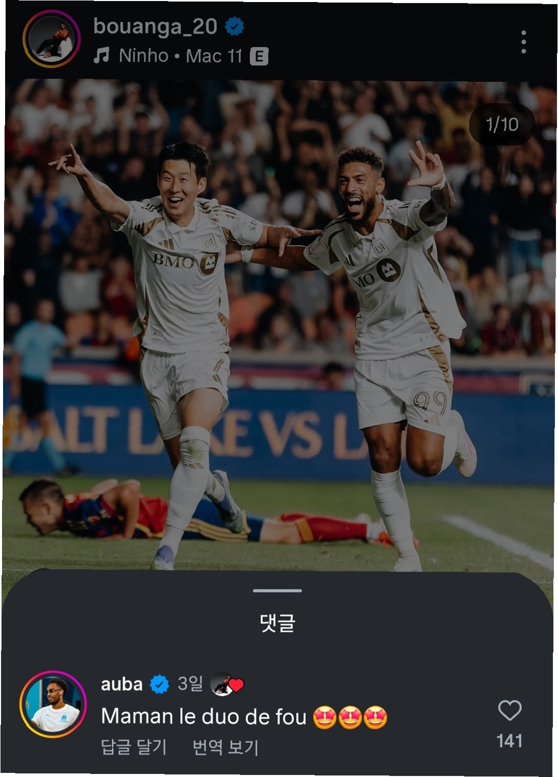 손흥민의 EPL 득점왕 선배인 오바메양도 감탄을 금치 못했습니다. 오바메양은 대표팀 후배인 부앙가의 개인 SNS에 손흥민과 부앙가의 사진이 올라오자 "엄마, 얘네 진짜 미친 듀오야"라고 엄청난 감탄사를 남겼습니다. 오바메양은 2018~2019시즌 EPL 득점왕, 2016~2017시즌 분데스리가 득점왕 등 득점에 있어서는 대단한 경지에 오른 선수 중 한 명입니다. 그런 선수가 손흥민과 부앙가의 활약에 찬사를 남기며 활약을 인정했습니다.