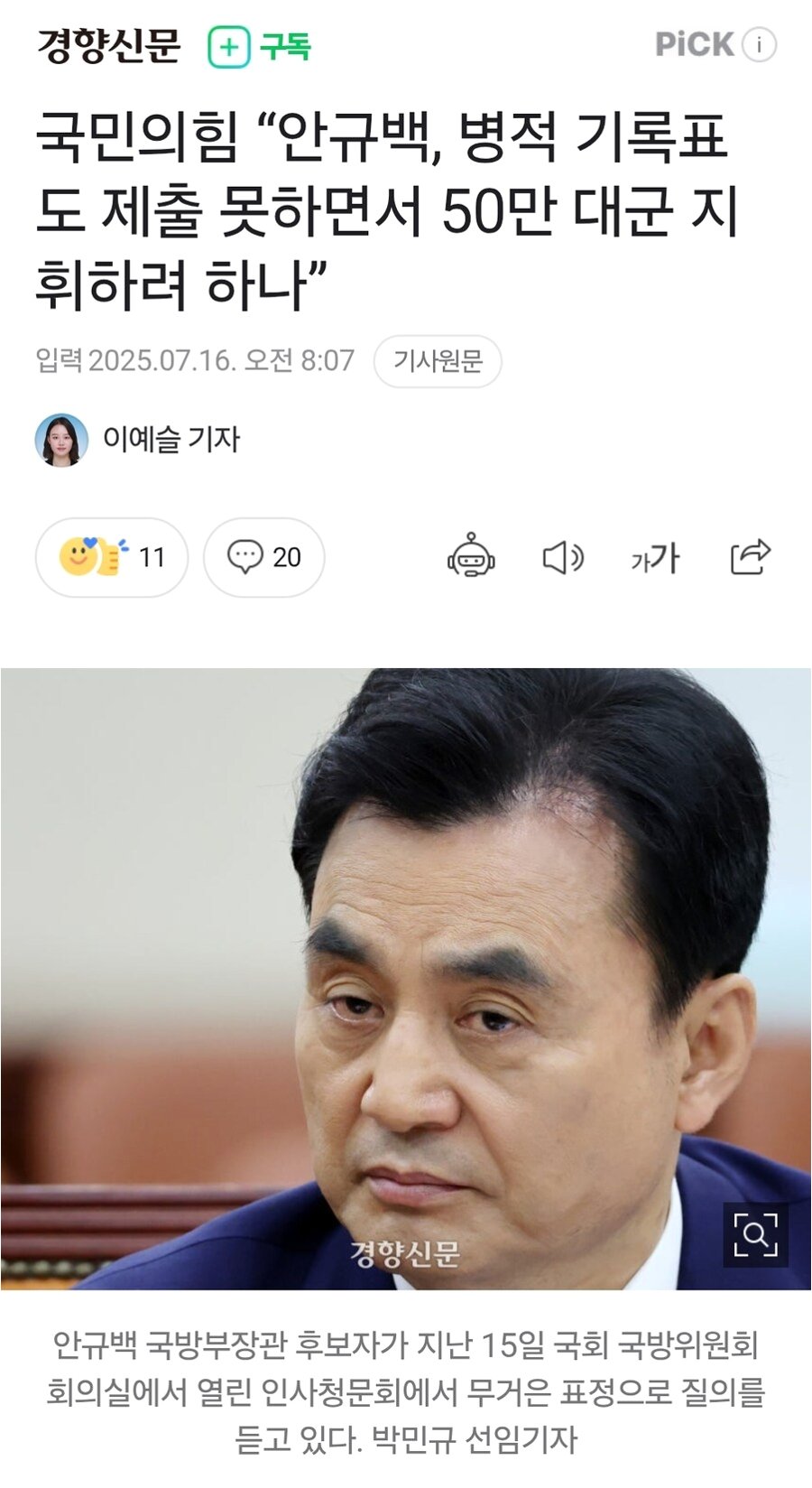 핵심 요약: 안규백 장관의 50만 대군 유지 계획