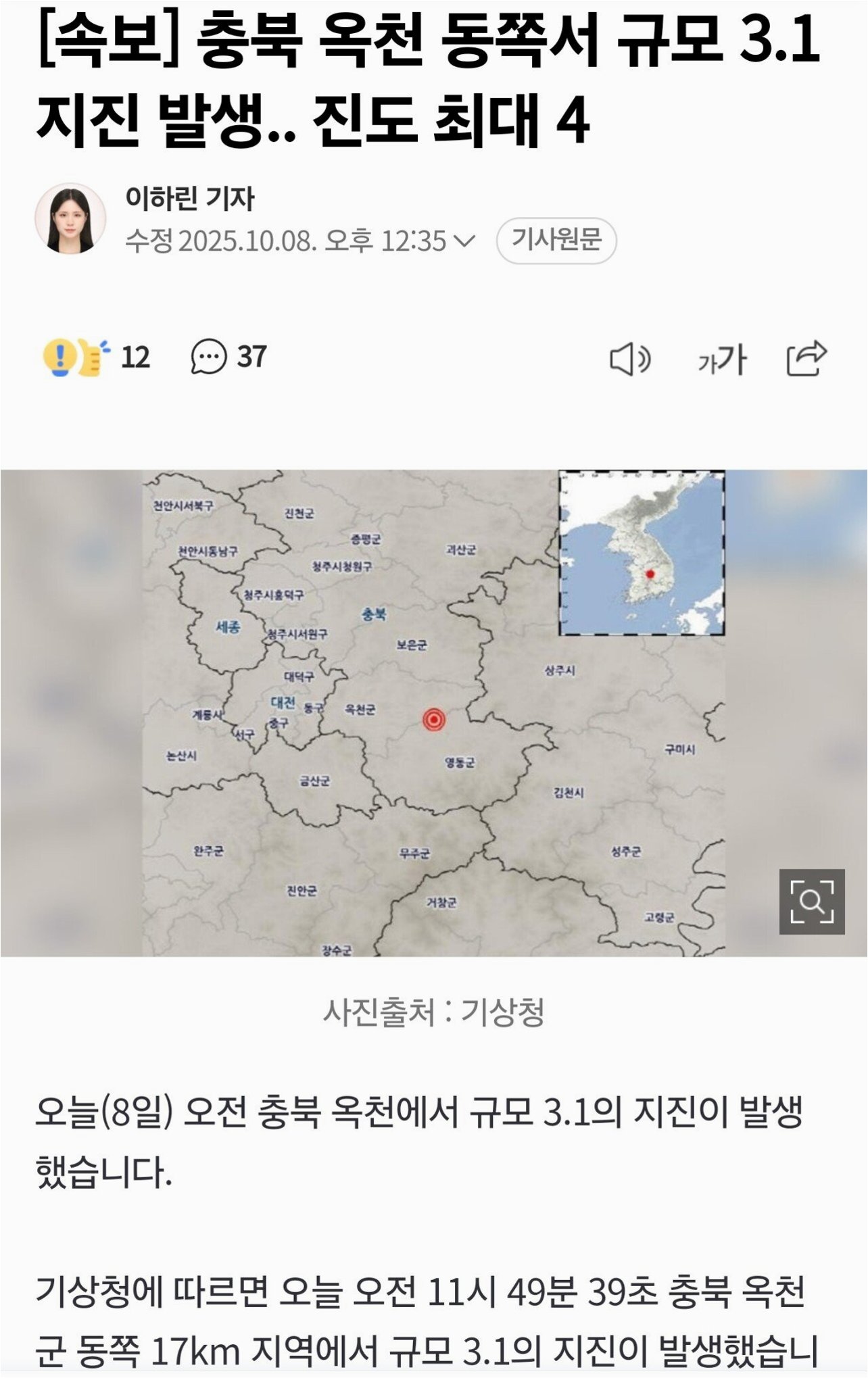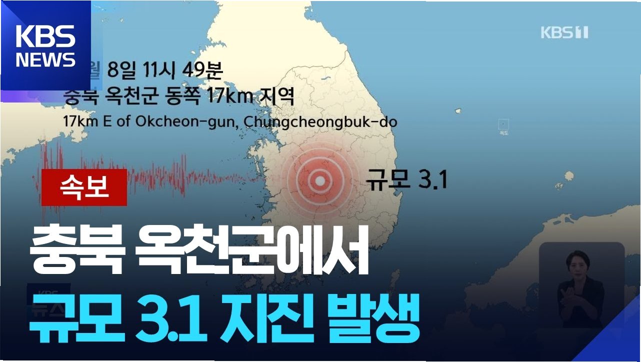 충북 옥천군, 규모 3.1 지진 발생