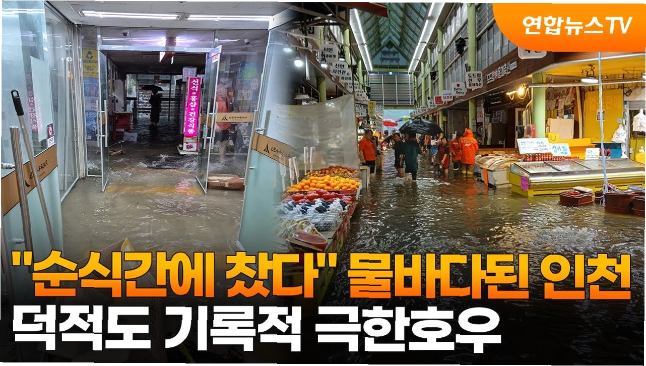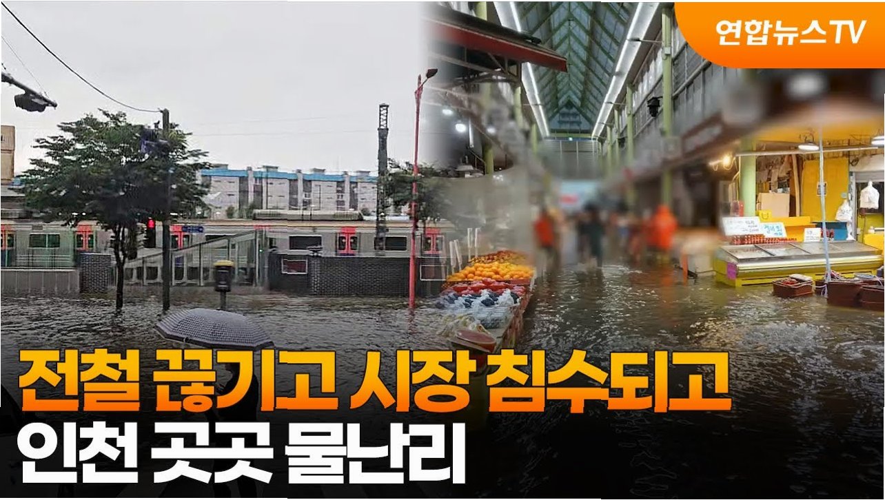 인천 서구의 한 시장은 물바다가 되어 냉장고와 쓰레기가 떠밀려왔습니다. 지하상가에서는 상인과 손님들이 황급히 대피하는 소동이 벌어졌습니다. 중구의 한 야외 공원에서는 빗물이 폭포처럼 쏟아져 내렸고, 흙탕물 급류가 도로를 뒤덮었습니다. 맨홀에서는 빗물이 역류해 인도가 잠겼고, 도로 옹벽이 무너지면서 차량 통행이 통제되기도 했습니다. 이른 아침부터 호우경보가 발효된 인천에는 오늘 하루 434건의 침수 피해가 접수되었습니다.