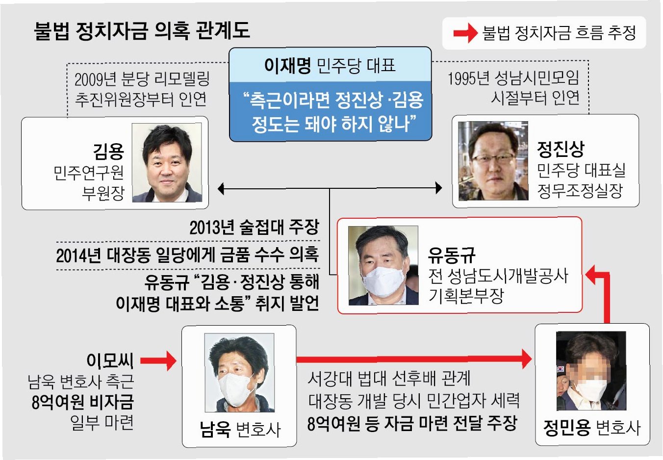 이재명 대통령이 '측근'에 대해 언급하며, 김용과 정진상을 예로 들었던 발언은 유명합니다. 한 더불어민주당 의원은 이재명 대통령이 누군가를 측근으로 표현하는 것을 극도로 조심한다고 말합니다. 측근이라는 표현 자체가 다른 사람들과의 거리감을 만들 수 있다는 것을 알고 있기 때문입니다. 하지만 김용과 정진상과의 깊은 관계는 공공연한 사실로 알려져 있습니다.