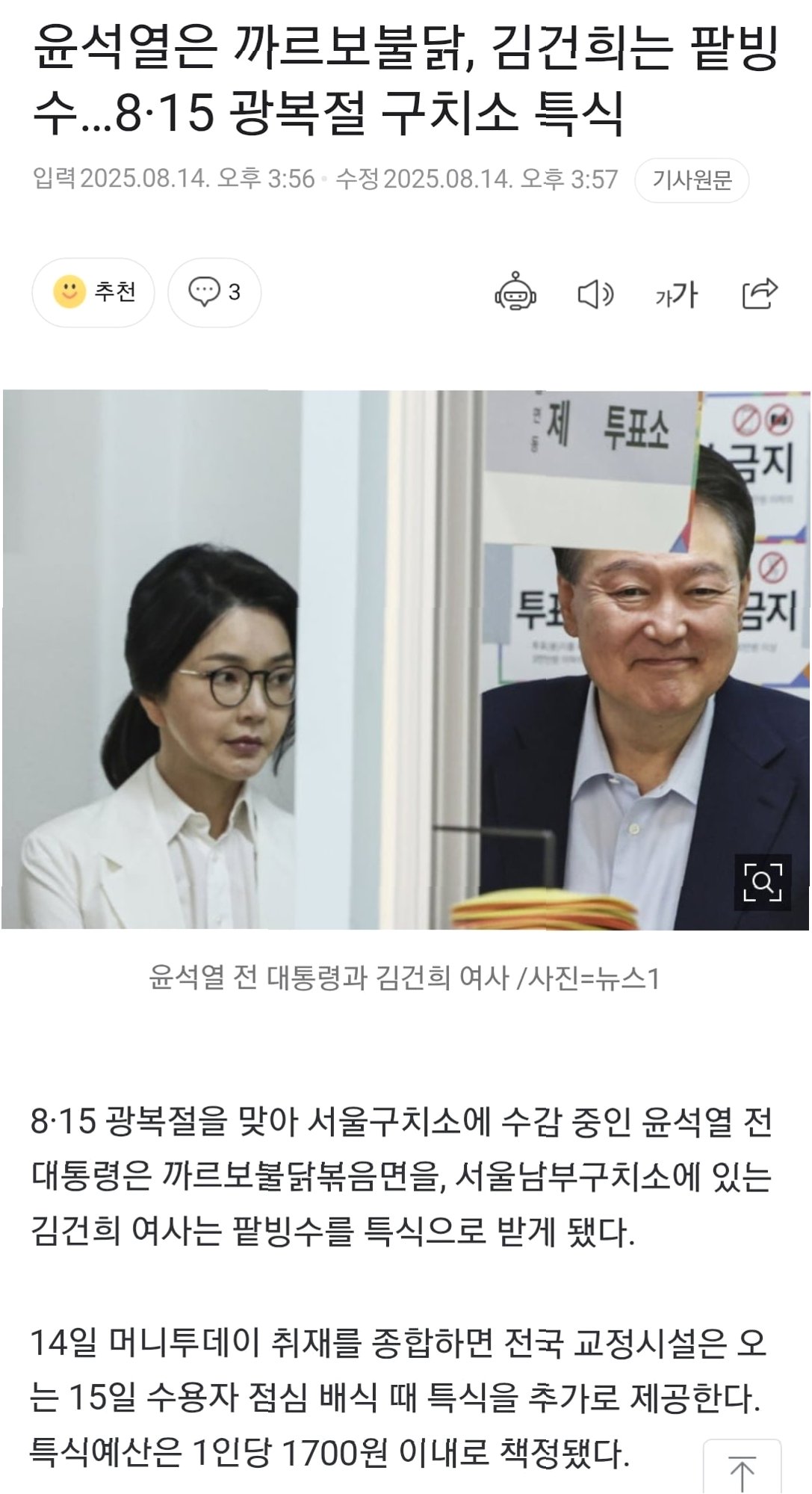 윤석열 전 대통령과 김건희 여사가 있는 서울구치소와 서울남부구치소의 광복절 특식 메뉴에 대한 관심이 쏠리고 있습니다. 특별한 날을 맞아 수감자들에게 제공되는 식단은 때때로 큰 화제가 되곤 합니다. 이번 광복절에는 어떤 메뉴가 준비되었을까요? 그들의 식탁에 오른 메뉴는 단순한 음식을 넘어, 여러 가지 의미를 담고 있는 듯합니다.