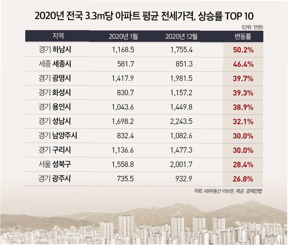 전세 시장도 뜨겁다… 하남의 전세 가격 상승세