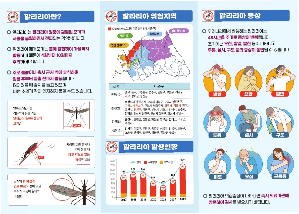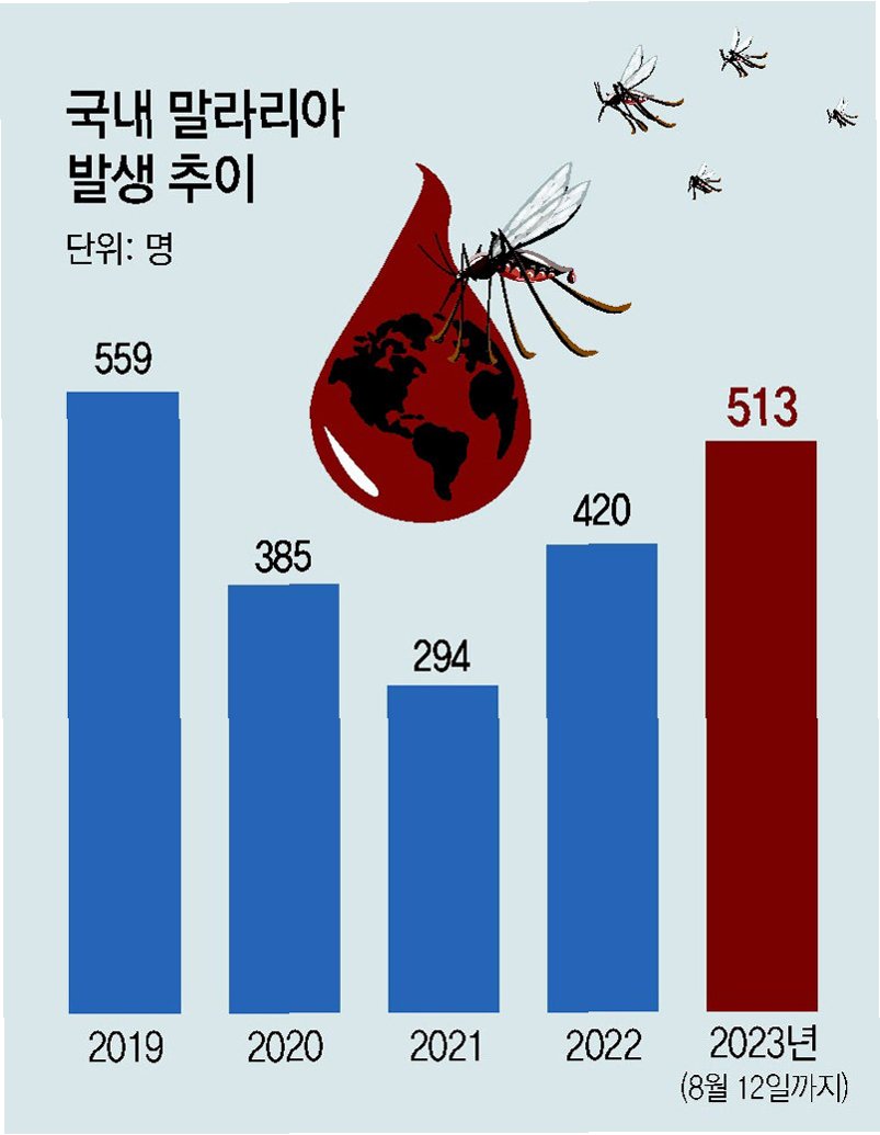 질병관리청 감염병 포털 통계에 따르면, 올해 초부터 이달 중순까지 말라리아 환자는 406명 발생했습니다. 국내 말라리아 환자 수는 2021년 294명, 2022년 420명, 2023년 747명, 그리고 2024년 713명으로 꾸준히 증가하는 추세입니다. 특히 경기, 강원 등 일부 지역에서는 말라리아 경보가 발령되기도 했습니다.