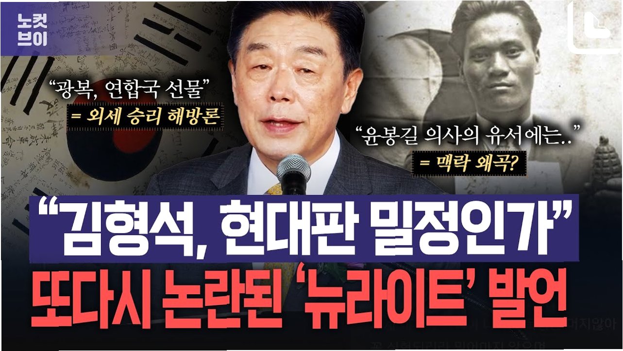 김형석 독립기념관장의 광복절 경축사 발언을 두고 여권이 '역사 쿠데타', '신(新)친일파'로 규정하며 맹비난, 파면 요구. '뉴라이트' 역사관 논란과 맞물려 향후 역사 논쟁으로 확산될 전망.