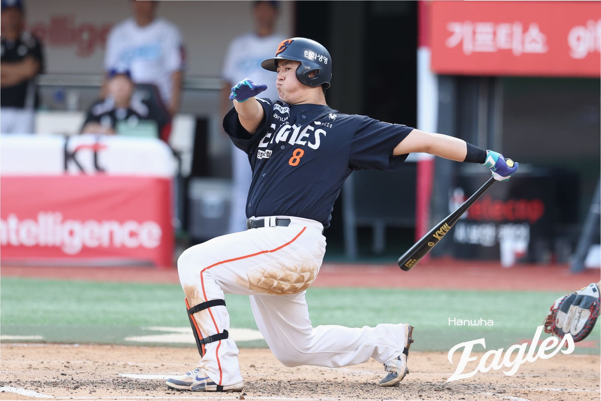 승부처는 8회말이었다. 3회말 1득점 이후 추가점이 나오지 않아 답답했던 한화는 7회말 무사 2,3루 찬스에서 단 1점을 얻는데 그쳤다. 2점으로는 안심하기에 일렀다. 그리고 8회말 다시 마운드에 올라온 화이트를 상대로 선두타자 손아섭의 안타가 나왔고, 문현빈이 시도한 번트가 내야 안타가 되는 행운이 따르면서 무사 1,2루 찬스가 찾아왔다. 다음 타자는 4번타자 노시환. 그런데 노시환이 초구부터 번트 모션을 취했다.