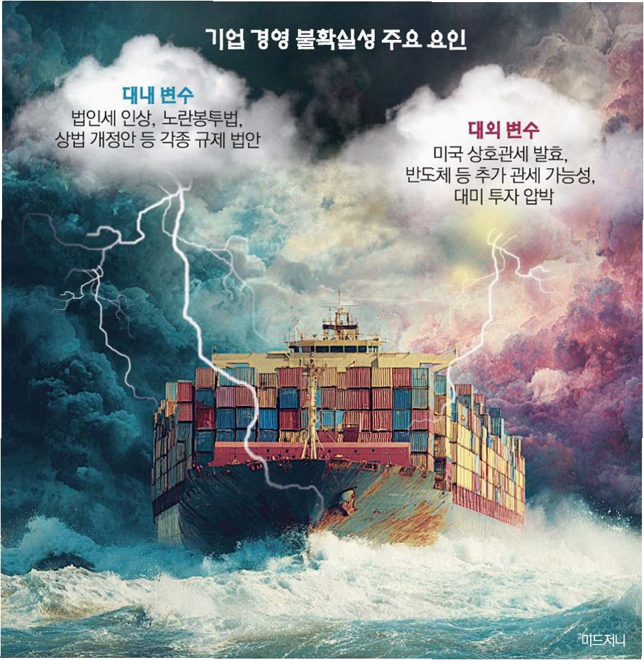 미국발 관세 폭탄, 노란봉투법, 법인세 인상… 기업, 생존 기로에 서다