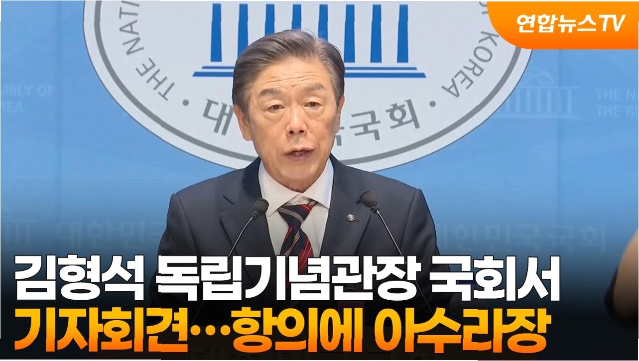 김 관장은 오늘 국회 소통관 기자회견에서 “독립정신의 성지이자 공공기관인 독립기념관 위상이 심각한 도전을 받고 있다”며 “극소수 광복회원을 앞세운 정치세력이 겨레누리관을 20일째 불법 점령하고 있다”고 주장했습니다. 항의하기 위해 기다리던 사람들과 김 관장이 기자회견장이 있는 국회 소통관 1층에서 마주치며 회견 시작 전부터 소란이 일었습니다.