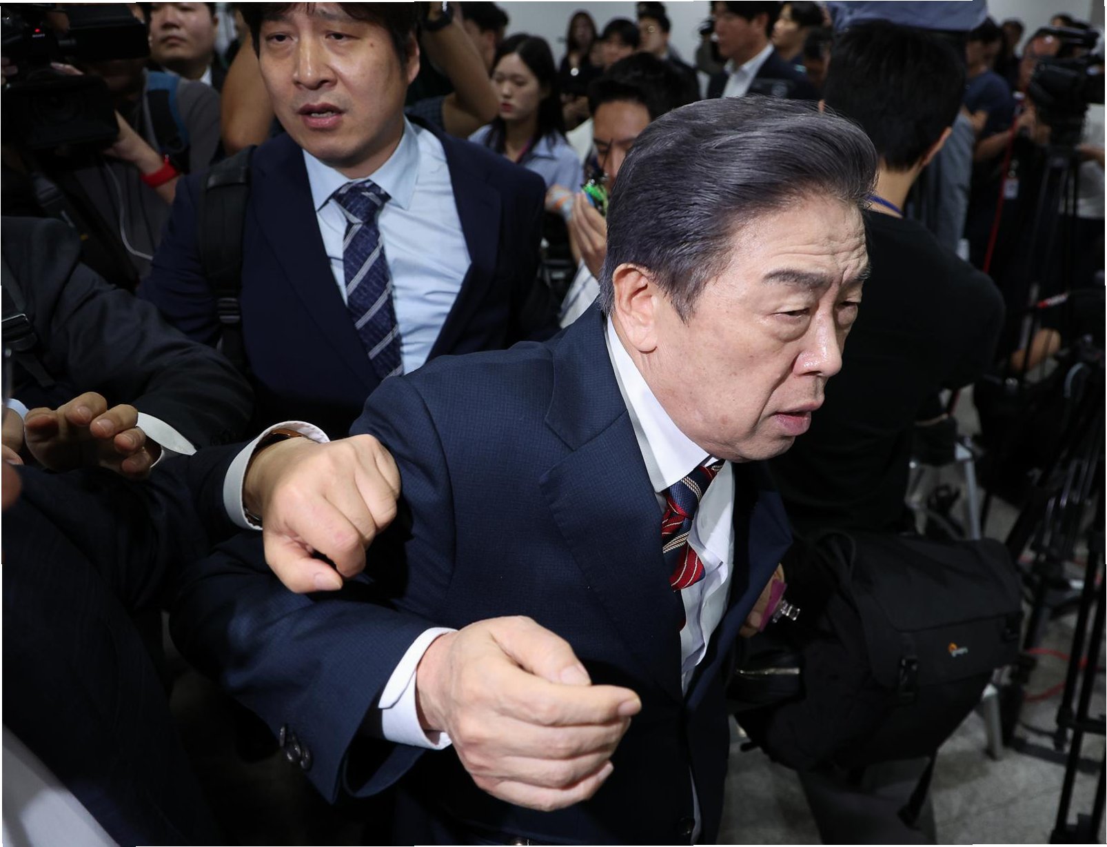김 관장은 주차장까지 100m가량 걷는 동안 15분 넘게 대치했고, 일부 시민들 간 멱살을 잡는 등 몸싸움도 벌어졌습니다. 이 과정에서 여성 한 명이 인파 속에 넘어지면서 구급대원이 출동하기도 했습니다.